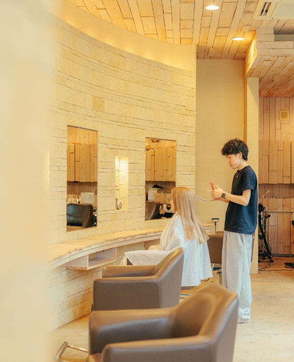 店内は光の入り方や空間の見せ方を意識して設計してもらいました。お客様がリラックスできるだけでなく、カラーやスタイルが映える光環境を整えています。スタッフの技術面も含めて、細かい部分でのバランスを常に意識していますね。