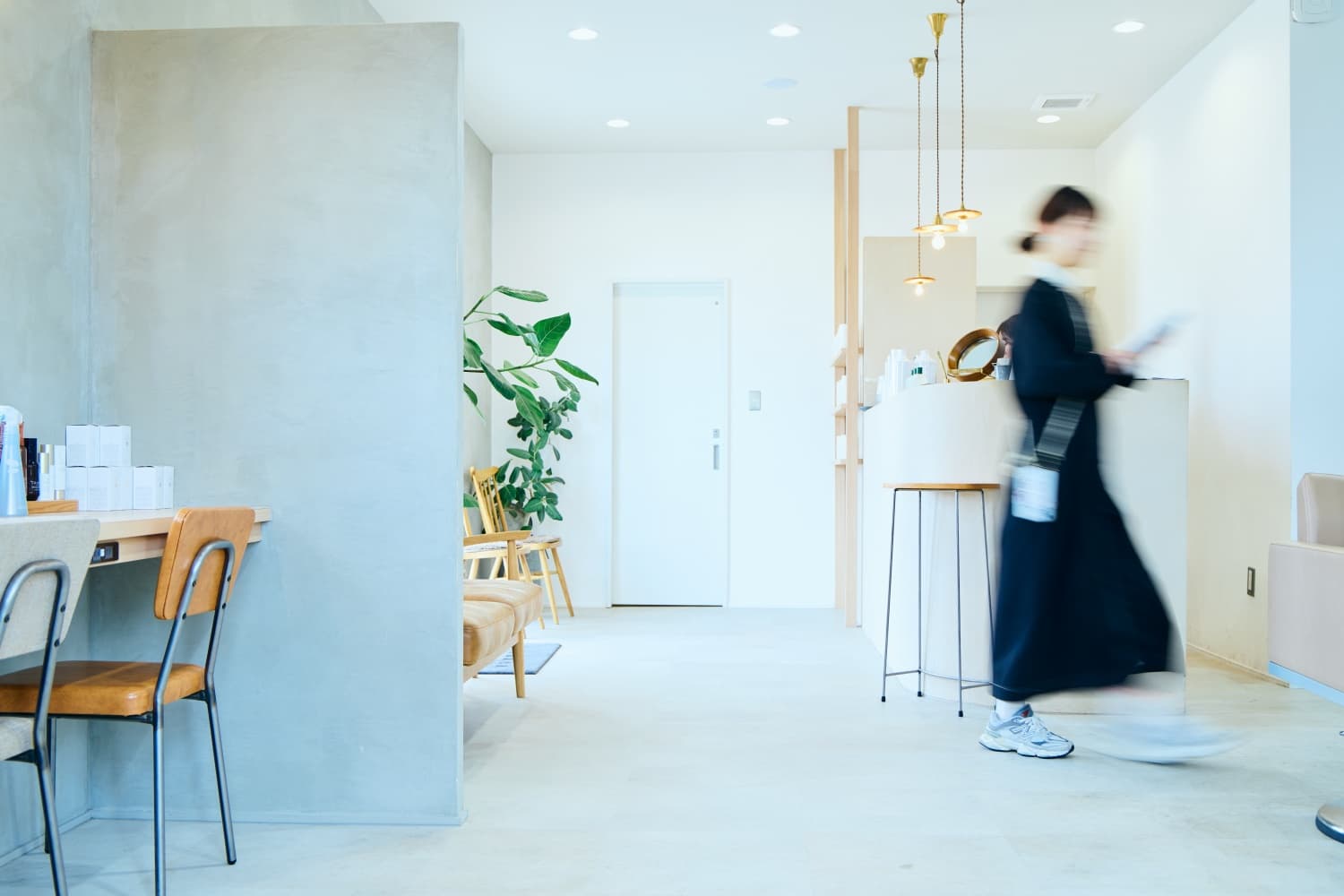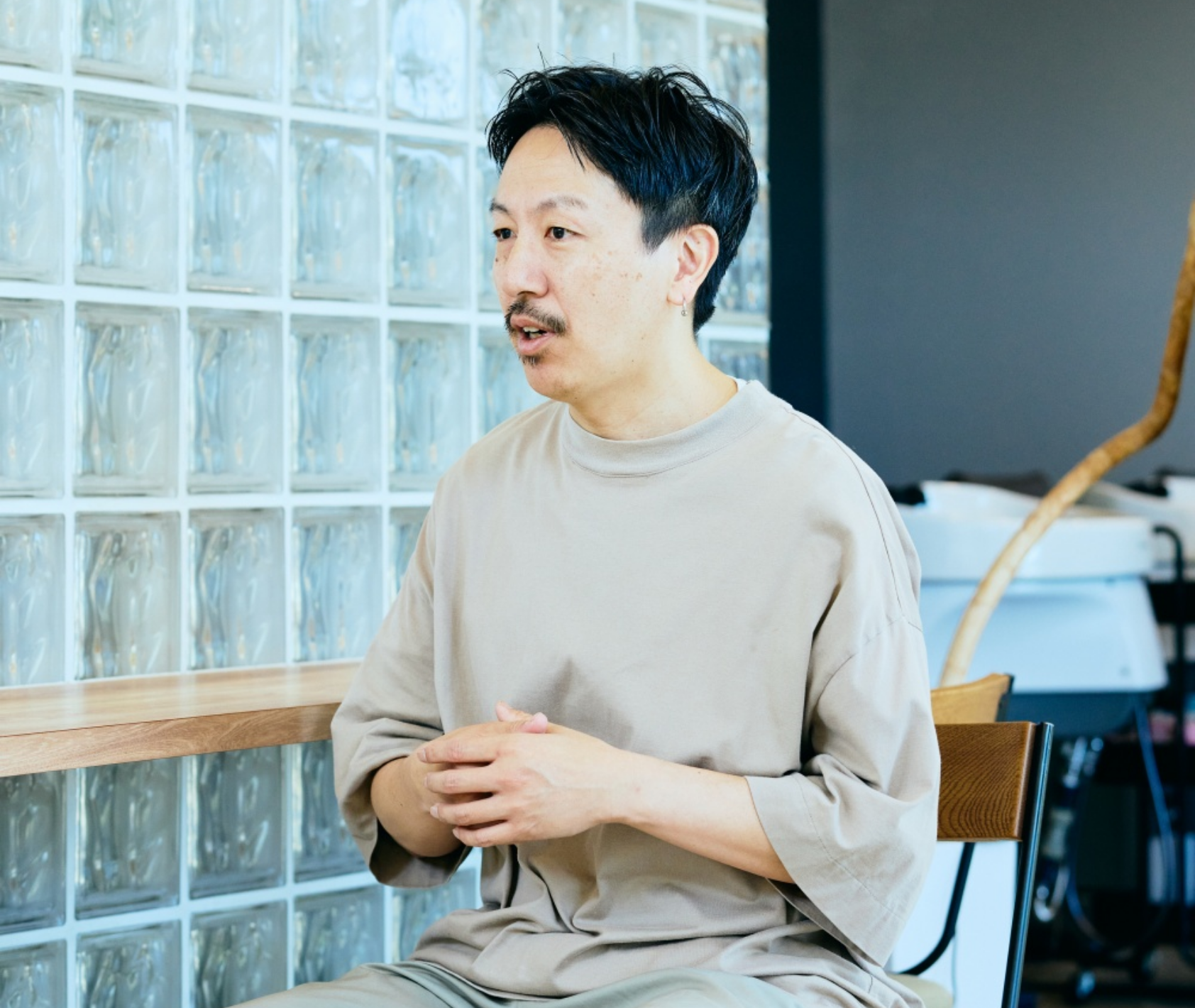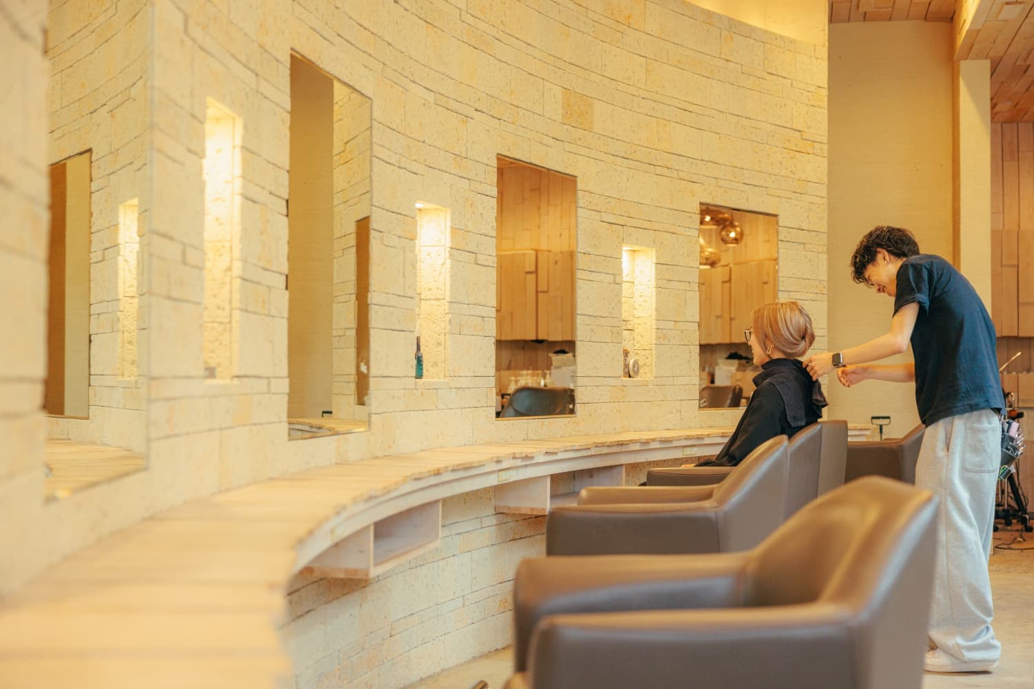 「美容室のデザインでは、トレンドを取り入れつつも、長く使えるデザインにすることを意識しています。流行を追いすぎるとすぐに古くなってしまうこともあるので、Atelier OUさんと相談しながら、時代に流されないおしゃれな空間づくりを心がけています。また、Atelier OUさんはこれまで多くの美容室を手掛けているので、動線設計などのノウハウが豊富です。椅子の間隔やシャンプー台の配置、照明の明るさなど、細かい部分を安心して任せられるのも大きな魅力ですね。」