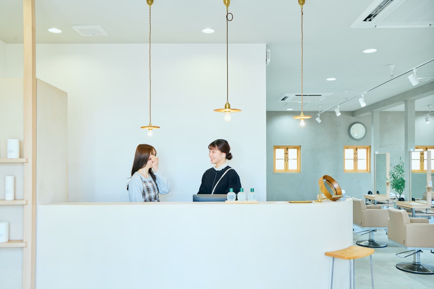「それに、スタッフもSNSとか写真の写りをすごく気にするんですよ。せっかく可愛い髪色やヘアスタイルに仕上げても、写真にうまく映らなかったらもったいないじゃないですか!だから、お客様が心地よく過ごせるだけじゃなくて、スタッフも楽しく働ける空間を作りたくて。そういう思いでデザインを考えました。」